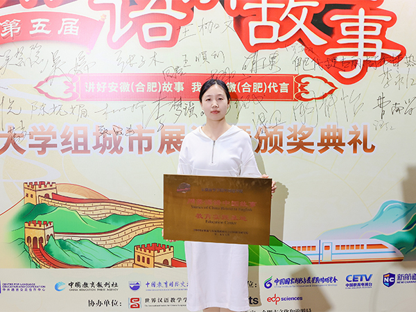 本网讯(通讯员:黄亚萌)5月10日,第五届“用英语讲中国故事大会”安徽地区大学组城市展演在合肥圆满落幕。大会由中国国家创新与发展战略研究会、中国教育电视台、新航道国际教育集团联合主办,合肥选区由共青团合肥市委员会、合肥市人民政府外事办公室、合肥市文化和旅游局指导,由安徽省翻译协会、安徽省外国留学生教育管理学会、新航道合肥学校、合肥新航道前程留学公司主办。此次展演汇聚了来自中国科学技术大学等全省13余所高校的学子,他们以英语为桥梁,生动展现安徽青年对家乡文化的深度解读与创新表达。pp电子学子吴慧慧和陈恺凭借现场的优异表现,荣获“传播之星”称号,外国语学院借此契机正式成立“用英语讲中国故事”教育实践基地,为学校的文化传播与外语教育开辟了新的篇章。