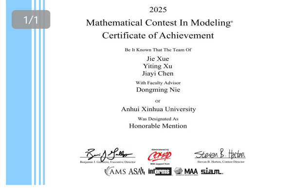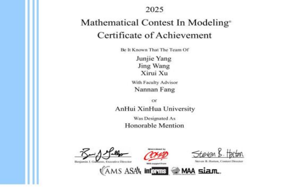 本网讯(通讯员:保女子)近日,2025年美国大学生数学建模竞赛成绩揭晓,pp电子学子组成的15支队伍全部获奖,其中由聂东明、王兴龙、方楠楠三位老师指导的队伍获得了Honorable Mentions(俗称H奖,也认定为国际级二等奖),是目前pp电子在此项赛事中获得的最好成绩。