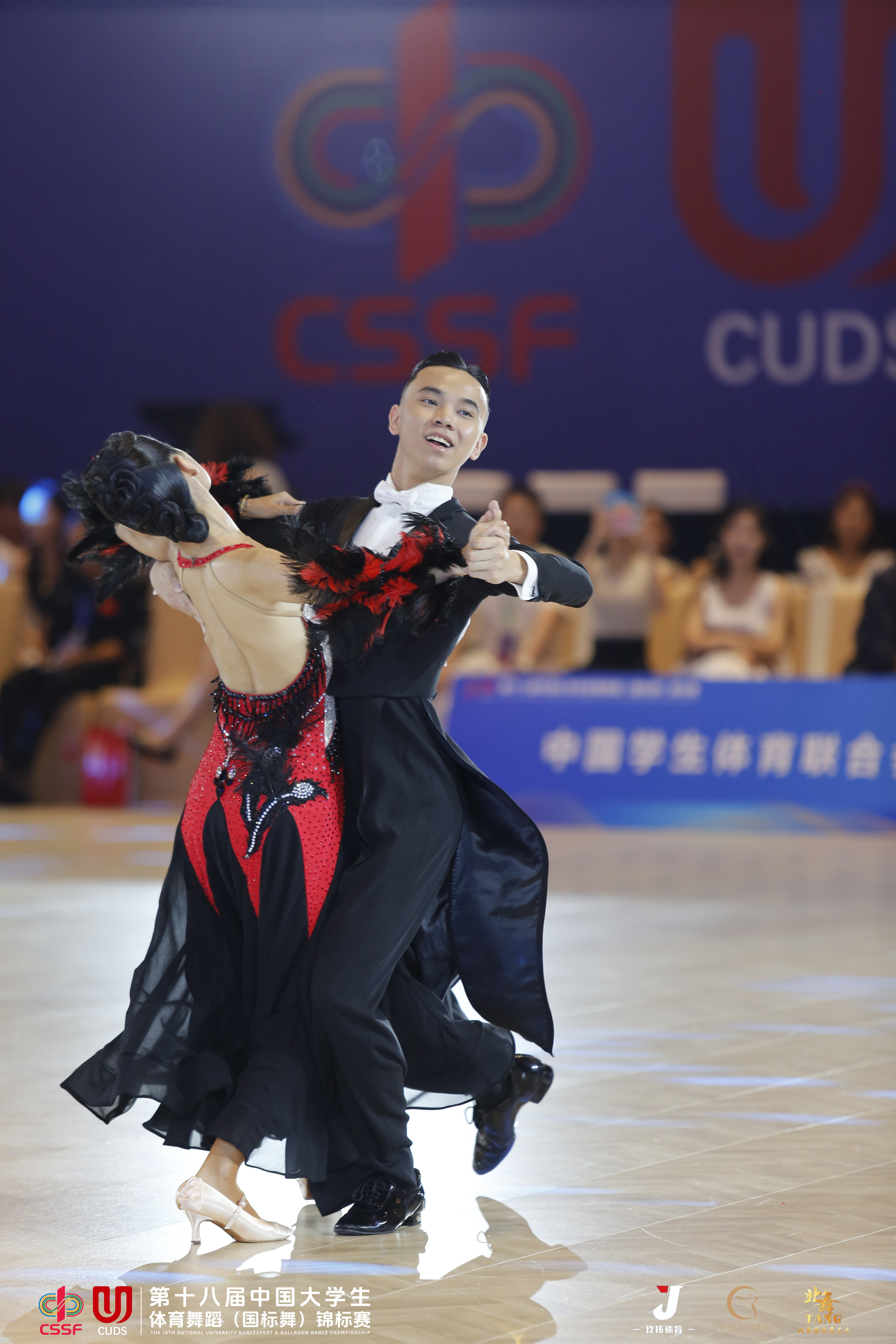 杨子健\王舒灿(右)组合在大学生丙B组单项F中发挥出色,荣获第一名;
