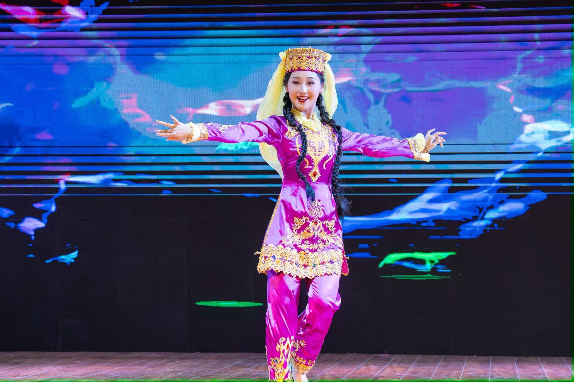 在民族民间舞板块,艺术学院的教师们带来了风格迥异的精彩作品。高瑞老师的藏族舞蹈《阿佳·静河》诠释着高原女儿如静水深流般的生命力量。春梦莉老师的乌孜别克族经典剧目《哈拉孜姆》带我们走进乌孜别克族的神秘世界,感受那独特的异域风情与深厚的文化底蕴。