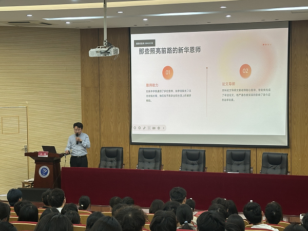 在讲座最后,叶观澜老师以《新华赋》深情寄语新生,用饱含温度的文字让同学们深刻感受校园的文化底蕴与家的温暖。整场讲座内容充实、氛围热烈,在阵阵雷鸣般的掌声中圆满落幕,为新生明确成长方向、坚定奋斗信念注入了强大动力。