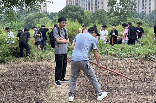翻土整地、除草育苗、清理环境、维护设施……昔日安静的基地瞬间充满了青春的活力与劳动的欢声笑语。同学们手持农具,虽动作稍显生疏,但态度认真专注,一丝不苟。汗水浸湿了衣襟,泥土沾满了双手,但笑容始终洋溢在每个人的脸上。他们在亲身实践中体会“锄禾日当午”的艰辛,感悟“一粥一饭”的来之不易,更在协作互助中快速拉近彼此的距离,增强了集体凝聚力。