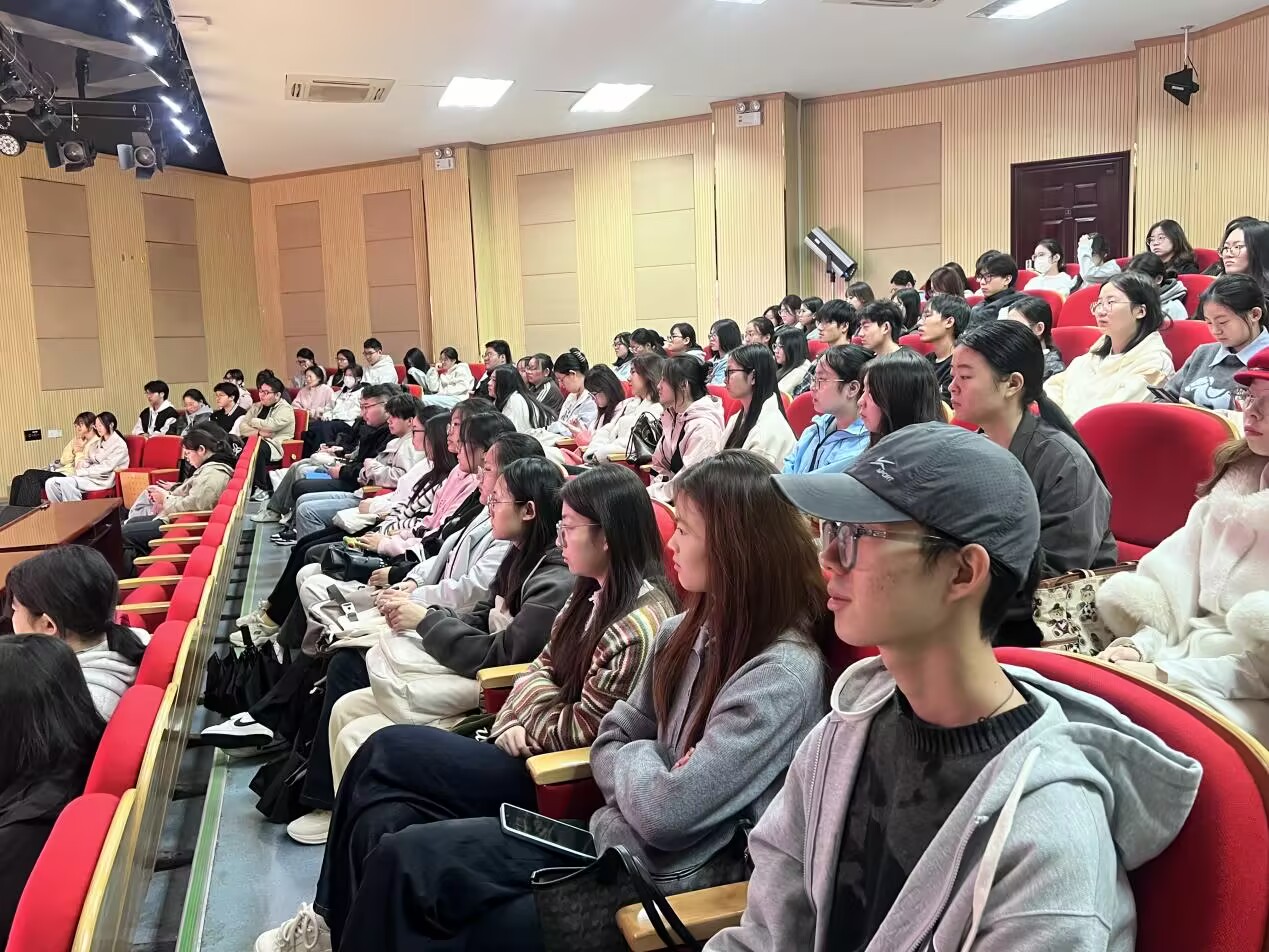 首场讲座由马郢村驻村书记钟宇围绕“党建引领,城乡架桥——马郢村蝶变之路”展开讲述。他从“马郢计划”谈起,详细介绍了该村以“助学、助农、助村”为核心,在城市与乡村之间搭建互动桥梁的振兴实践。钟书记的讲述生动展现了马郢村从“空心贫困村”到“网红打卡地”的蜕变历程,也让同学们深刻体会到党建引领在推动乡村振兴中的关键作用。
