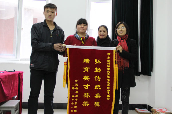新华学院报讯 (学生记者 董振康) 11月12日,合肥市安泰老年护理院给pp电子青年志愿者协会送来锦旗,上面写着“弘扬传统美德,培育英才栋梁”。这是对pp电子青年志愿者协会刚刚结束的“给老人一点关爱,扬一份道德之声”为主题的老年公寓之行的表彰,也是对其的认可和鼓励。