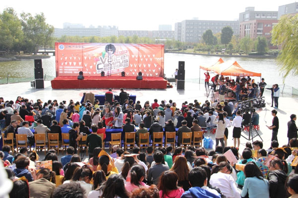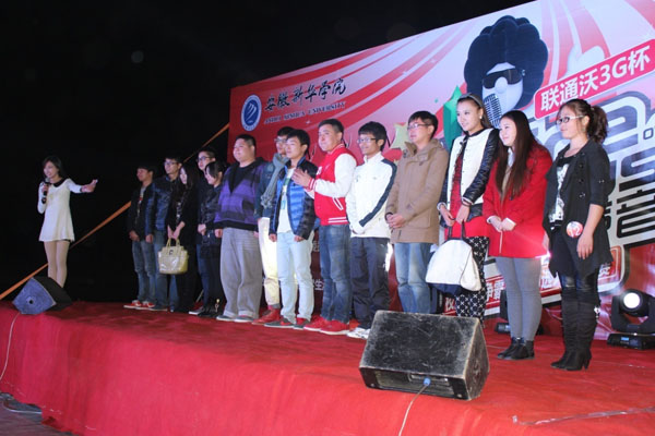 本网讯(通讯员 洪威)11月16日,首届“新华好声音”校园歌王争霸赛导师选人赛、导师考核赛在校如琴湖音乐广场精彩上演。央视青年歌手大奖赛安徽赛区通俗组冠军、安徽电视台《当红不让》栏目评委刘小雅,安徽电视台节目主持人大海,校团委洪威老师担任本届好声音的导师。比赛从中午12点一直持续到晚上10点,共有3000多名同学观看,现场气氛十分热烈。