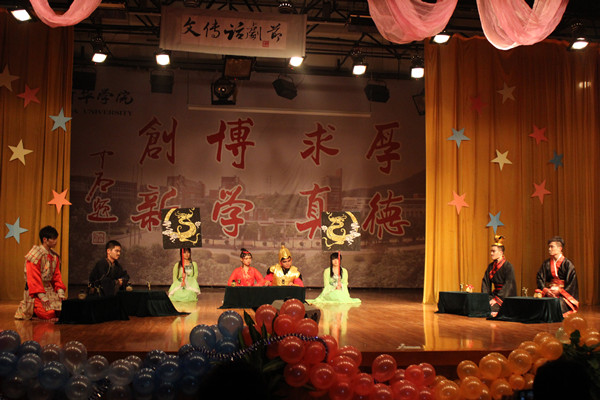 伴随着《凤凰于飞》的宫廷舞蹈,此次话剧节落下帷幕。pp电子文化与新闻传播学院院长谢昭新,学生处处长、团委书记朱兆健以及部分二级学院行政副院长观看了话剧演出。