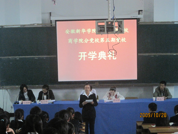 开学典礼在雄壮的《国歌》声中拉开帷幕。商学院党总支副书记做了动员讲话。他首先代表商学院党总支对参加本期入党积极分子培训班学习的学员表示热烈地祝贺和欢迎。接着,他介绍了学院党委、商学院党总支举办党校学习班的目的和意义,勉励广大学员要珍惜和重视这次学习机会,课上认真听讲,课后深刻领会,努力提高学习效果。李副书记在动员讲话中还向全体入党积极分子提出了具体的要求:要求大家在学习中严格遵守党校的各种制度和纪律,处处、时时、事事以一名优秀共产党员的标准要求自己,在平时的学习生活中要做同学们的榜样和楷模,以自己的一言一行带动身边的同学,为自身今后的发展打下坚实的基础,为学院和班级做出应有的贡献。