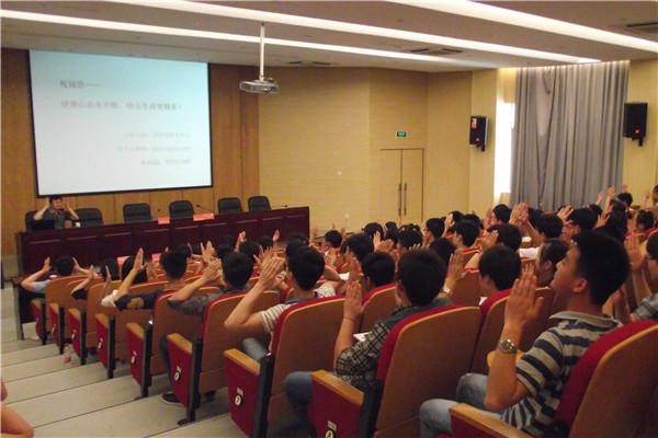 陈纪刚从如何看待心理健康这一问题入手,结合大量生动详实的案例和有趣的心理活动,为在场师生讲解了积极心态的塑造、良好人际关系的奥秘和适应环境的四大逆商等心理知识。他还就同学们关注的有代表性的问题进行了回答。