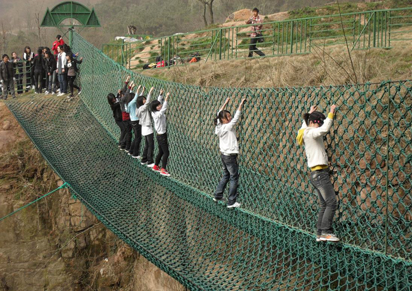 经过近半个小时的车程,同学们顺利抵达了今天的目的地——紫蓬山。在人文素质部和组织部的带领下,全体同学一同体验了“悠悠梦梦”、“小马过河”、“太空漫步”以及“溜索”等多项刺激有趣的素质拓展活动。这些活动不仅要测试挑战者的勇气,更要测试大家的意志力。