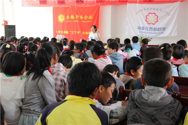 团队在乐都县高级实验中学、药草台小学、门源县阴田小学开展了调查问卷、素质拓展、安全和感恩教育讲座,为同学们带去了文具和体育用品,就会考准备、择校意向和大学生活等方面进行面对面交流。在与药草台小学校长、乐都县高级实验中学校长和团委书记的交流中,实践团队了解了当地中小学发展现状,就“格桑花”工作进行了深入探讨,在改善教学条件和创新西部助学活动形式上达成了诸多共识。