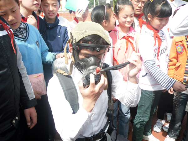 此次活动主要分为应急疏散、参观展板和器材使用、体验消防等四个方面的内容。我院消防志愿者们现场观摩了梦园学校的师生应急疏散的情况。随着紧急的电铃声响起,学校广播室及时播报某教学楼三楼教室发生火灾,各班级进行紧急疏散至学校操场。学校师生按照应急疏散方案仅用1分钟的时间就全部有序疏散至操场内。随后,我院消防志愿者还观看了消防宣传展板和画册,并现场学习使用了消防器材。