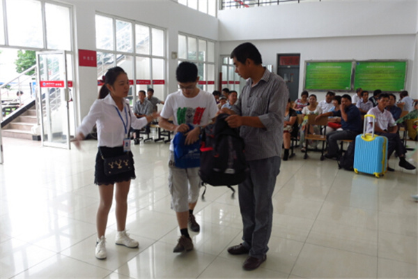 在迎新工作中,商学院学生会和院长助理团成员提供了非常到位的服务。商学院本着人性化的服务理念,特意在北门圆楼设立商学院新生接待处,并在商学院东门设置行李寄存处,安排专人进行看护,极大地方便了新生和家长,以及提高了行李管理的安全性。在东大厅还专设咨询台、助学贷款资料审核点、家长休息等候区等服务平台。迎新工作人员耐心与家长沟通,为新生家长安排座位休息,从北大门领着2014级新生办理专业、注册、报名登记、领取宿舍物品等入学事务,即使在下雨的天气,迎新工作人员都毫不退缩,把对新生的温暖传递在迎新全程当中。