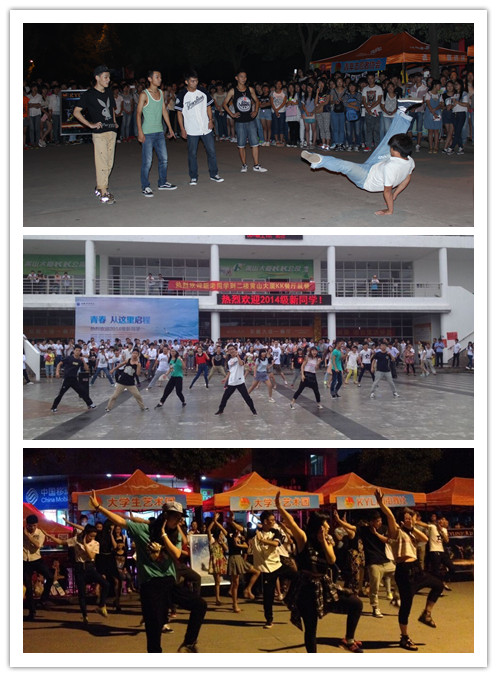 9月1日,华园新生报到的第一天便迎来了4000多位2014级新生,当天下午,翰林广场的音乐突然响起,神曲《小苹果》歌曲旋律在华园唱响。一群活力四射的大学生走到广场中央,上演了一场精彩的舞蹈“快闪”,引来了众多学生及家长驻足观看,瞬间现场热闹非凡。虽是短短的三分钟“快闪”活动,来自大学生艺术团30多位舞蹈成员的同学们也是经过辛苦地编排和排练。“想要在新生报到第一天,让新生和他们的家长感受到大学生的活力,感受到华园学子多才多艺,为新生以后的学习生活注入动力。”大学生艺术团成员刘轩在“快闪”现场说道。9月1号至3号迎新期间,大学生艺术团的成员们也利用晚上空闲时间,为新生带来街头文艺表演,希望用这种方式展现出当代大学生的活力与风采。来自商学院国际贸易实务专业的陈晓芸和刘悦两位大一新生还前来咨询如何加入大学生艺术团,她们说:“这个表演挺不错的,通过这个表演我们对学校的文化艺术有了更进一步的了解。”她们还希望可以加入大学生艺术团,与学长学姐们一起用艺术的表现形式展现大学生风采。