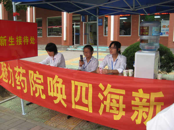 在经过了几天的充分准备后,药学院自9月1日早上七点钟开始,就已经在迎新点各就各位,迎接新生的到来。
