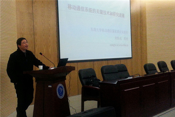 报告中,宋铁成教授从通信网架构、移动通信发展历程、4G通信系统关键技术与研究进展、5G研究方向、东南大学在移动通信方面所做的研究工作及进展五个方面进行详细阐述。他运用生活中的一系列实例并结合自身的实际参与,生动地讲述了移动通信系统的关键技术原理、研究进展及发展现状。报告会气氛热烈,反响很好。报告会现场,宋教授还与师生们进行了互动。这场报告会,开拓了师生们的视野,使他们掌握了移动通信领域最新技术研究动态。