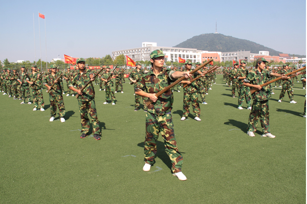 我院2010级学生此次军训自9月5日开始,9月21日结束,历时18天。其间无论炎热高温,还是连绵阴雨,参训的全体学生都始终保持高度的热情,严格认真地完成了各项训练任务;无论日常队列练习,还是站军姿,分列式等,都一板一眼,按照军训教官的指挥和要求完成。在队列抽查考核中,取得了良好的成绩。