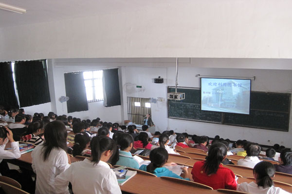 本学期图书馆从10月10日开始组织新生进行入馆培训教育,以多媒体讲座的形式,通过图文并茂的讲解,引导新生了解图书馆、热爱图书馆。在馆领导的指导、支持下,今年的入馆教育准备工作起步早,落实快,图书馆精心编写了“读者手册”和制作了PPT,并召集了二级学院教学秘书开会,布置新生入馆教育培训的工作。此次培训范围覆盖到全院9个二级学院,日程从10月10日持续至10月25日,是历年来培训人数最多、场次最多的一次。为了不影响新生的正常教学,全部利用中午的时间进行培训,图书馆的四位培训老师也精心准备,全力投入到培训工作中。