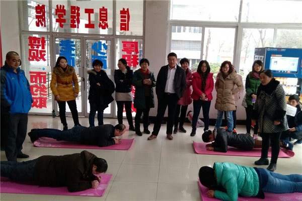 本网讯(通讯员:祝静静)为进一步加强教职工交流,提高团队凝聚力,1月15日下午,信息工程学院分工会开展“等你来挑战”平板支撑比赛。信息工程学院全体教职工参加比赛,执行院长马琪担任本次比赛的总裁判。