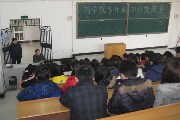 2011年3月4日,药学院在212阶梯教室举办了2011年专升本冲刺交流会。会议由药学院院长张国升教授主持,2008级专科班报考专升本的75名同学参加了此次交流会。