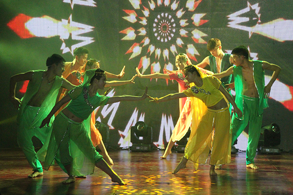 此次演出,舞蹈团热情奔放的印度舞《旋转婆罗多》作为压轴节目获得了现场阵阵掌声。由于舞台场地限制,演出前2个小时,在艺术团团长汪陆斌和舞蹈团团长刘绪丽的带领下,大家迅速重新调整了人员和队形,丝毫没有影响整支舞蹈的表演效果。晚会结束后,学生处处长、团委书记朱兆健慰问了大家,他对同学们的精彩表现表示赞赏,并鼓励大学生艺术团应多与外校交流。在此次晚会中,我们也欣赏到了其他高校较为新颖的节目形式。今后,大学生艺术团将不断加强与外界的艺术交流,促进pp电子大学生艺术团不断成长,不断进步。