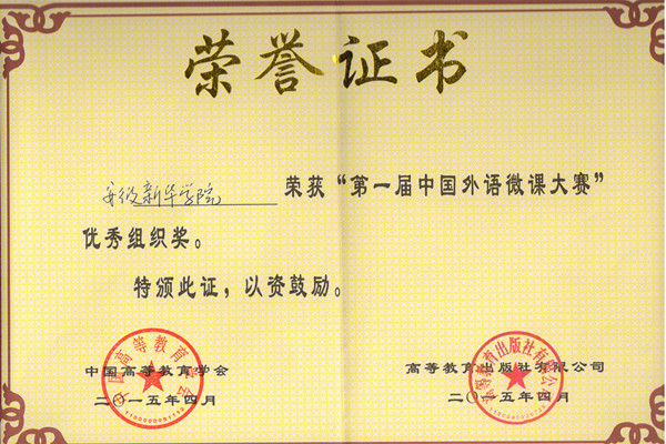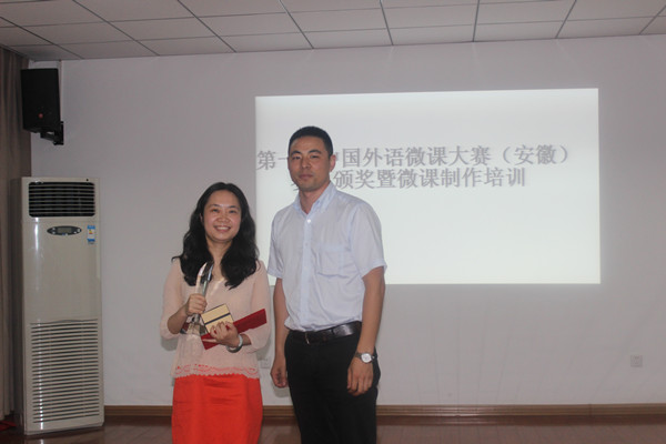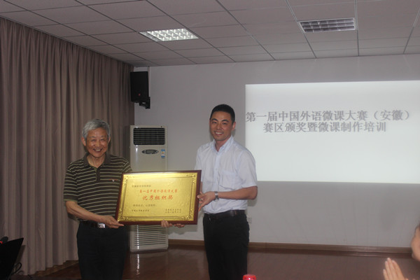 “第一届中国外语微课大赛”由中国高等教育学会、高等教育出版社、教育部高等学校大学外语教学指导委员会共同主办。大赛于2014年8月正式启动,历时10个月,来自全国28个省市自治区861所高等院校,近2800名教师参赛,经过初赛、安徽省复赛、全国总决赛三轮激烈角逐,并由全国专家进行匿名评审,共164件作品入围全国总决赛,最终评出一等奖8名,二等奖16名,三等奖30名。
