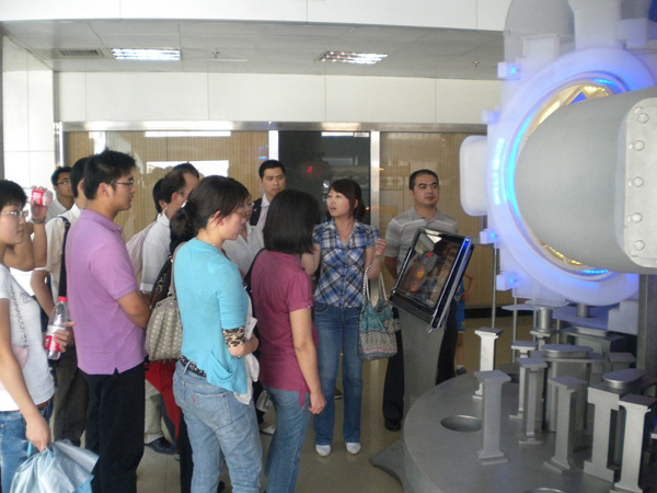 等离子体物理研究所的解说人员对信息工程学院的来访表示欢迎,详细介绍了高温等离子体物理和受控热核聚变的理论过程,播放了等离子实验室的宣传片。老师们感慨国家重大科学工程EAST全超导托卡马克试验装置的神奇,从中了解到科研人员采用类似太阳发光发热的原理,使氘、氚在极高温条件下发生聚变反应产生巨大能量,从而为人类未来利用可持久发展的洁净能源作出科学探索。在EAST装置大厅和超导电工实验室,老师们亲眼目睹了“人造小太阳”的宏伟与壮观,先进的装置给大家带来了无比的震撼和惊喜,与此同时老师们对科技人员的科学精神、奉献精神充满了钦佩和敬意。紧接着老师们来到固体所,认真听取了耐高温材料研制的实验过程,感受浓郁的科研氛围。