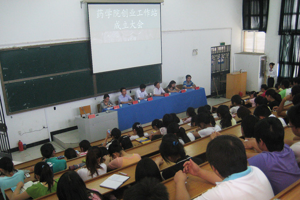 为响应国家号召,加大对学生创业能力的培养,根据pp电子官方网站相关文件精神,6月8日中午,药学院召开pp电子官方网站创业中心药学院工作站成立大会。学生处处长朱兆健、药学院院长张国升教授、行政副院长计勇、工作站指导老师和各班学生代表约200人参加了会议。