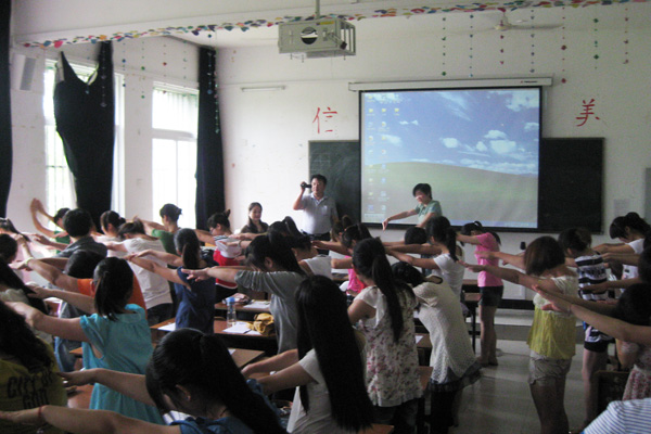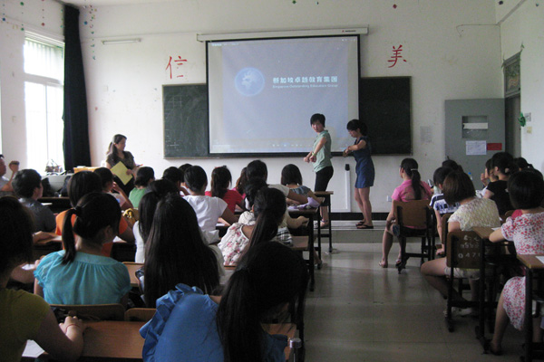 宣讲会上,卓越英语进修学校负责人向2008级英语和2009级应用英语学生介绍了卓越英语办学情况和儿童英语教学的特点。Maria老师现身说法,呈现了一堂精彩、生动的儿童英语教学课,让学生们了解了儿童英语学习特点和教学规律。最后,卓越英语进修学校进行现场测试,让学生们准备10分钟课,并唱一首英文儿歌。通过现场招聘,初步拟定了30多位意向明确、素质较高的学生。这些学生将在今年下半年赴上海进行英语教学实训。