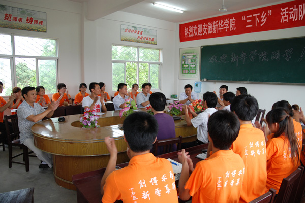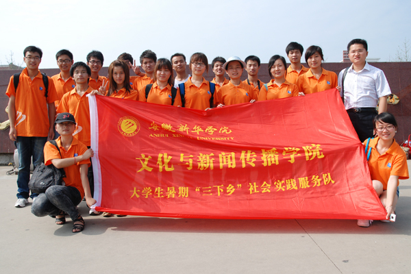 为积极响应团中央、团省委关于暑期大学生文化、科技、卫生“三下乡”活动的号召,深入贯彻落实胡锦涛总书记向青年学生发出的“向实践学习,向人民群众学习”号召,6月29日,文化与新闻传播学院三下乡 “青春之歌”志愿服务小分队一行17人,作为校级重点项目于当日下午四时抵达安庆市宿松县河塌乡中心小学,开展各类社会实践活动。