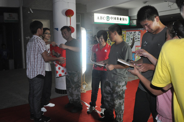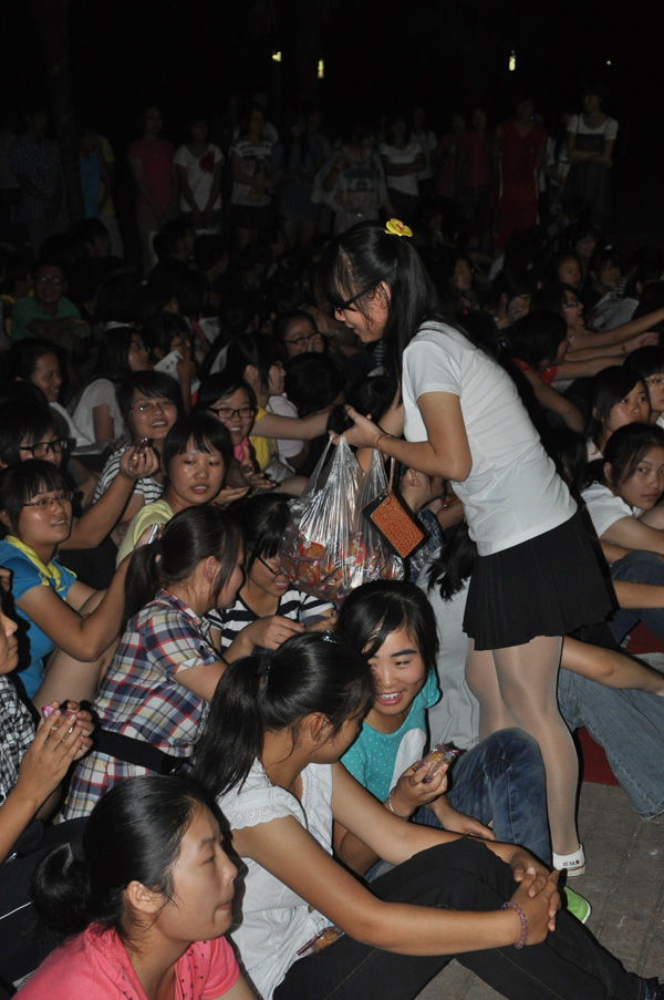 晚六点,文传东边马路,给新生准备的第二份惊喜“浓情中秋,爱满文传”暨迎新生晚会拉开了帷幕。晚会还没开始现场已经沸腾了,整个晚会气氛轻松活跃,节目形式丰富多样。有线条优美的体育舞蹈及动感十足的街舞表演,亦有美妙的竹笛悠扬;有校园歌手冠军的动情演唱,还有大一新生的清纯歌声,更有纯熟的魔术表演。晚会上,文传的三位教官给同学们带来了中秋祝福并倾情献唱,新生们上台为教官献上中秋礼物表达对教官的深情厚谊,温暖的画面定格在文传人的心间。