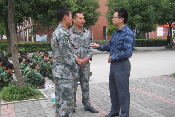 计勇代表药学院对三位教官表示亲切问候,对教官的辛勤工作给予了高度评价,并表示衷心的感谢,对在短短两周内取得的明显训练效果给予了充分肯定和赞扬。他说,承训部队官兵克服军训时间紧、内容多、任务重的困难,不辞劳苦,充分展现了人民军队过硬的军事素质和优良作风。希望教官继续对学生严格要求,严肃纪律,科学施训,不断提高军事训练质量;进一步加强思想教育和内务管理,切实锻炼新生的意志品质,强化新生的组织纪律性,提高新生的基础文明水平和自我管理能力,为他们今后的学习、生活打下坚实的基础。同时勉励参训的2011级新生要好好把握最后一周军训时间,继续保持积极向上的精神风貌,听从指挥,增强体质,砥砺意志和品格,为大学新征程和人生新起点奠定坚实基础。