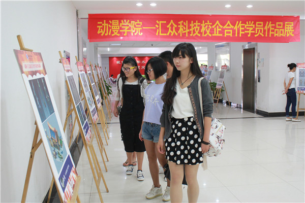 本网讯 (通讯员:郑妮) 9月16日,动漫学院在图书馆举行了“动漫--汇众校企合作作品展”,共展出校企合作班学员的70余件优秀作品,吸引众多师生到场观看。