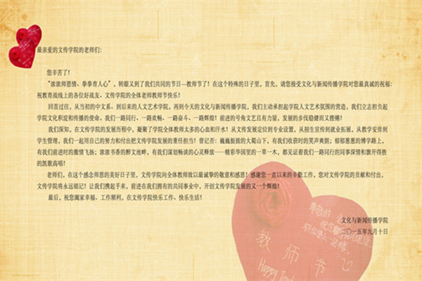 回望文传学院一路走来的发展历程,从最初的中文系,到后来的人文艺术学院,再到今天的文化与新闻传播学院,文传一直致力于学校人文艺术氛围的营造。前进的号角文艺且有力量,发展的步伐稳健而又铿锵!文传人深知,这不仅仅是文传广大教职员工努力的结果,更凝聚了学校领导、各二级单位和曾经在文传工作过的广大同事的心血和汗水。文传学院组织开展了主题为“感谢有您、助我前行”感恩行活动。