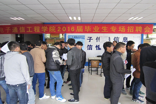 本网讯(通讯员:陈晓芳,摄影:储金华)为进一步搭建人才沟通合作平台,拓宽毕业生就业渠道,给毕业生提供全面有效的服务,电子通信工程学院于11月11日下午举办2016届毕业生专场招聘会,到场招聘的有泰瑞达(上海)有限公司合肥分公司、合肥同智机电控制技术有限公司、合肥徽远成电气有限公司等8家单位,400余名毕业生前来应聘。