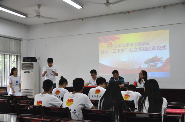 启动仪式上,土木与环境工程学院学管秘书彭智首先介绍了本次大学生“三下乡”暑期社会实践活动的概况与注意事项。