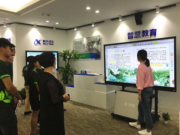 在人工智能展示厅的调研让队员们大开眼界,在这里,他们见到了语音技术在各个领域的应用,例如讯飞输入法、智能阅卷、智能车载系统等,其中令人印象最深刻的就是智能音响和“讯飞听见”。智能音响除了可以语音点歌以外,还能起到家居管家的作用,通过它可以实现对智能家居的控制,这也是未来发展的趋势所在。“讯飞听见”则是可以将语音实时转化为文本的产品,它的转化速度比经过专业训练的速记员还要快,且准确率高达90%,大大提高了速记的效率和准确性。