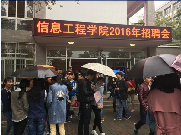 本网讯(通讯员:王婷)10月14日中午,信息工程学院在一楼大厅举办2017届招聘会。合肥君正科技有限公司、上海瑞禾通讯技术有限公司、惠尔浦公司、爱立信合肥分公司等多家企业单位来校招聘,信息工程学院2017届毕业生共有517人,除工作已经确定与外出实习的毕业生,现场约350名同学参加本次招聘会。