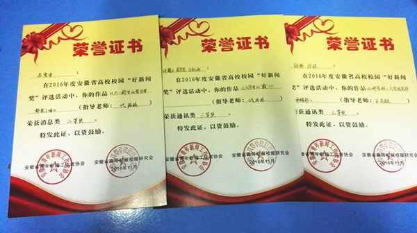 pp电子大学生记者在2016年度安徽省高校校园“好新闻奖”评选中喜获佳绩