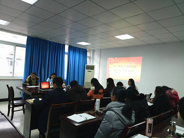 本网讯(通讯员:杨亚)1月6日下午,电子通信工程学院召开2016年辅导员工作总结会议,电子通信工程学院副院长钱颜娇、学管秘书陈丽、行政秘书储金华和全体辅导员参加会议。会议由陈丽主持。