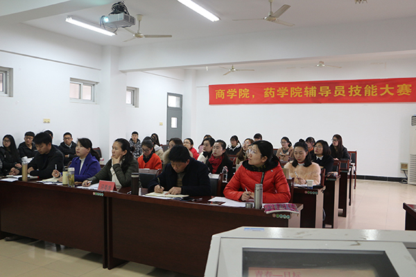 本网讯(通讯员:崔风波、刁欢,摄影:姚菲玲)为推动辅导员职业化、专业化发展进程,提高辅导员的职业技能和服务水平,促进高水平学生工作目标的实现,同时加强院系之间辅导员队伍之间的交流学习,2月17日上午,商学院、药学院共同举办辅导员职业技能大赛。药学院副院长余立新,商学院副院长王飞、药学院学管秘书刁欢、商学院学管秘书崔风波、校优秀辅导员邓欣倩担任评委,两个学院的全体专兼职辅导员、部分学生参加此次活动。