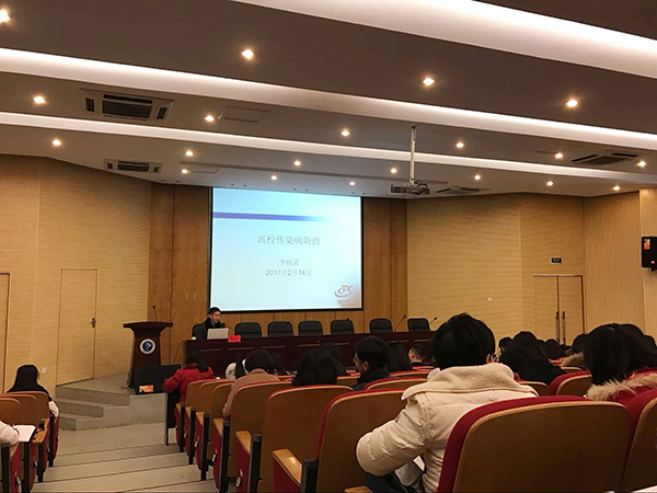 李栋梁介绍了传染病的共同特点,通过详实的内容和形象的比喻,向教师们讲解了传染病的产生、生存环境、传播途径等知识。李栋梁重点讲解了流感、水痘、麻疹、呼吸道疾病、结合病的症状及详细的预防措施,对如何预防春季传染病的方法作了具体指导。同时李栋梁还给大家介绍了艾滋病及其危害、艾滋病传播的主要途径及防控常识,他用详实的数据重点介绍目前艾滋病流行的新趋势、新特点。李栋梁强调了预防大学生成为艾滋病感染的重点人群的必要性,加强对大学生艾滋病防控知识的教育刻不容缓,建议通过主题班会、谈心谈话及形式多样的宣传教育活动。