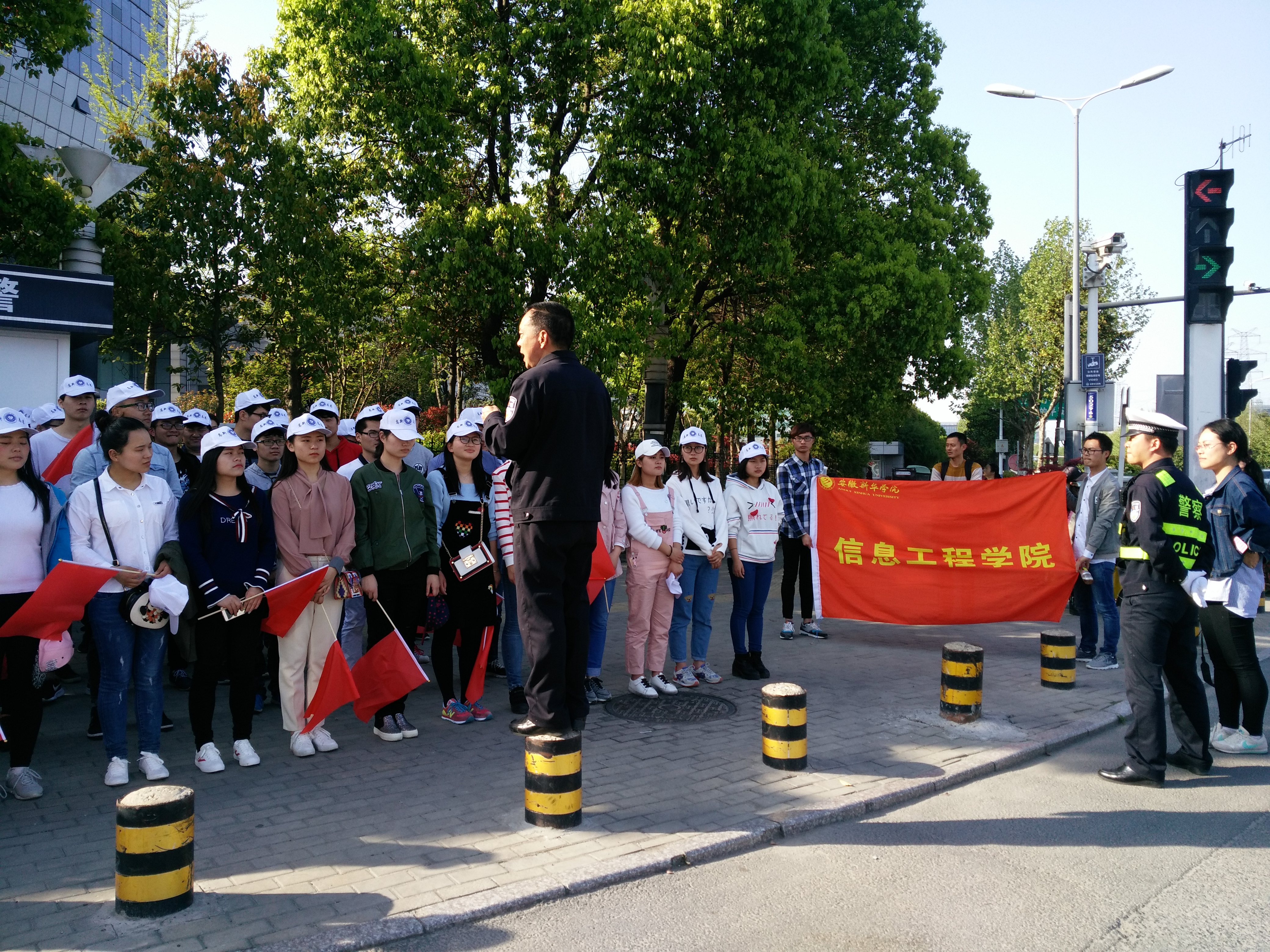信息工程学院“白手套”志愿服务队与高新区交警大队联合开展路面现场安全教育和交通协管活动