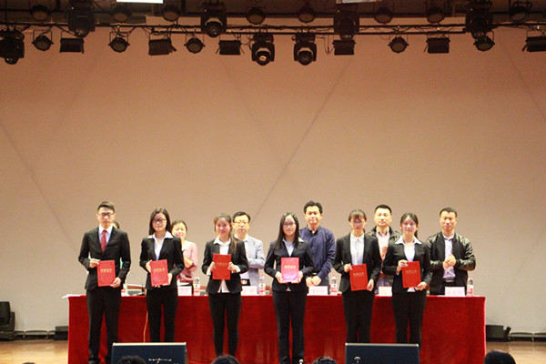随后,出席会议的领导为优秀指导教师代表与获奖学生代表颁奖。茆邓、陈润代表获奖者做了发言。他们分享了自己参与大学生学科竞赛活动的经验和感想,并鼓励同学们积极参与,认真准备,不断学习,提高专业素养。