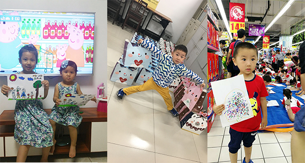 本次活动有70余名小朋友参加,根据不同的年龄分组,各小组由教师们领取任务卡,并与同组队员协作商量,任务中我们设定了:和爸爸妈妈一起完成一幅“感恩父母 我爱我家”的美画,大家集思广益,有的家庭用小动物表现出了平常生活中的温馨感、有的用花朵展现对爸爸妈妈的爱意。最后环节大家在1分钟内完成“惊喜彩蛋”,整个活动有童真的浪漫,有亲子间的浓情,一片欢声笑语。