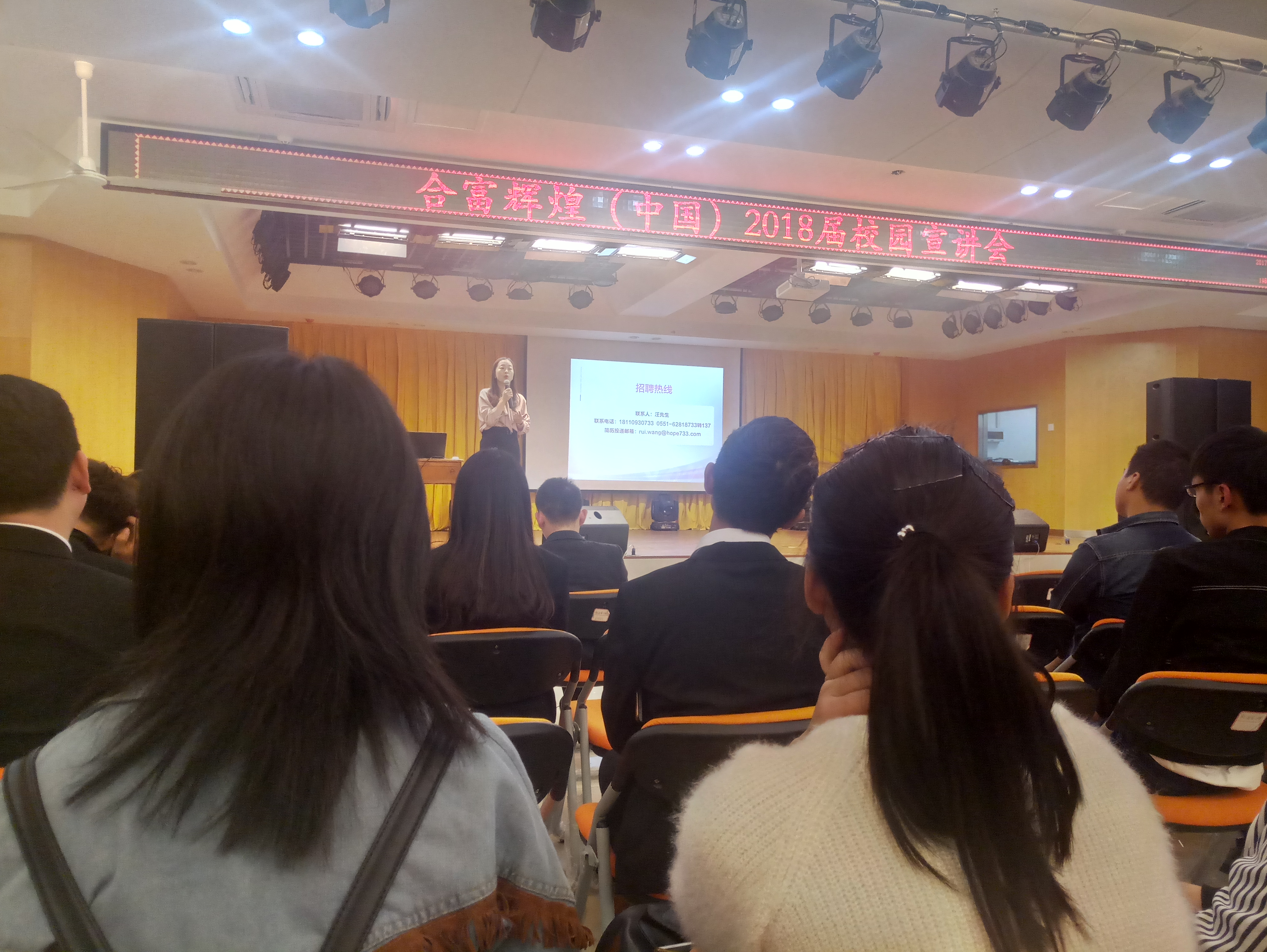 本网讯 (通讯员:张小菊)为进一步推动2018届毕业生就业工作,为毕业生提供更好的服务,10月23日至27日,pp电子分别邀请合富辉煌集团控股有限公司、合肥南山房地产开发有限公司、华拓金融服务外包有限公司、易居(中国)控股有限公司4家企业来pp电子进行宣讲活动。