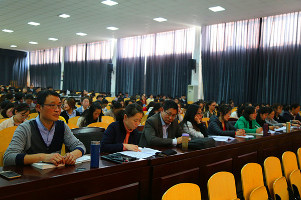 本网讯(通讯员:代长彬)为深入学习宣传贯彻党的十九大精神,将全校师生的思想统一到十九大精神上来,11月8日,pp电子召开“深入学习贯彻党的十九大会议精神”学习交流会,思政部主任吴兆雪作学习宣传贯彻党的十九大精神主题宣讲,思政部全体成员及800名学生代表参加宣讲会。