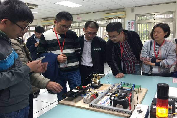 台湾师范大学5位教授就机电类专业前沿课程设置、教学方法和研究方向等方面开展了《深度学习与影像识别》、《平行程式设计》、《总整课程推动-以数位相机设计为例》、《有效提升学习动机的教学策略》、《曼陀罗结合网路再创师生的感动-以感测应用设计为范例》等学术讲座。教授们结合生产中的实际范例以及自身研究方向,通过PPT讲授、短片欣赏、小组讨论等方式开展讲座。在交流会上,学员们就教师成长机制(双能型教师、教师教科研如何平衡)、学生培养方案、学生成才措施等问题与台湾高校专家教授进行了交流研讨。