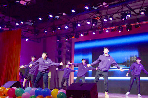 在领导及教师代表的寄语视频后,伴随着震撼的音乐和绚丽的灯光,由2017级新生带来的COS舞蹈串烧正式拉开了本场晚会的序幕。