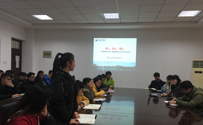 在学生座谈会上,心理中心的老师通过“握拳”的心理小活动进行破冰引导,使同学们打开话题,畅所欲言。学生们在座谈会上表达了作为心理委员的工作困惑,交流了各自班级心理工作开展的经验,提出了“90后”大学生的心理困惑和需求,也对学校心理健康教育工作提出了许多创意想法。