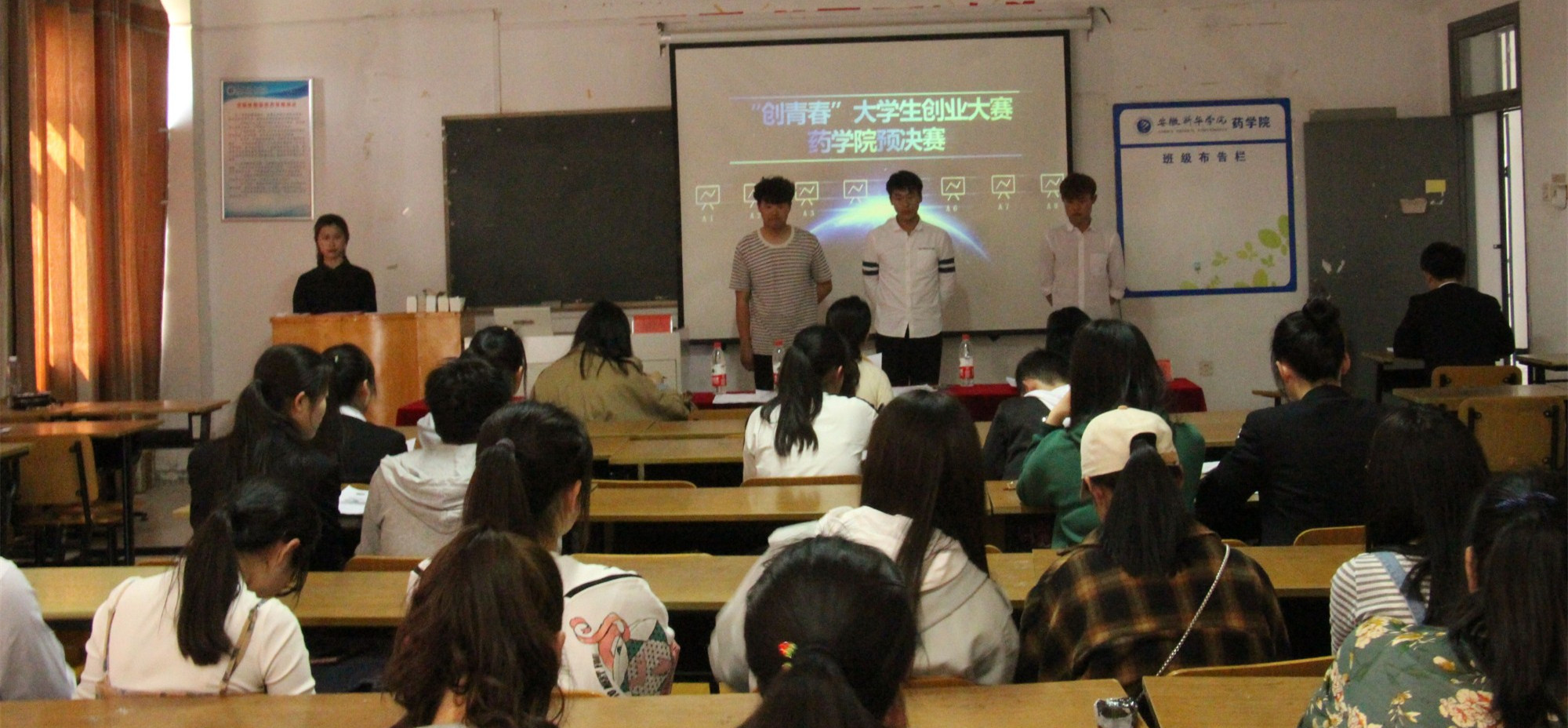 本网讯(通讯员:赵影,陈妍)为激发药学院学生创业热情,培养创新精神,提高创业意识,强化创业能力,3月28日,药学院举办了“创青春”挑战杯创业选拔赛,全体学工人员和教师代表作为比赛评委参会。